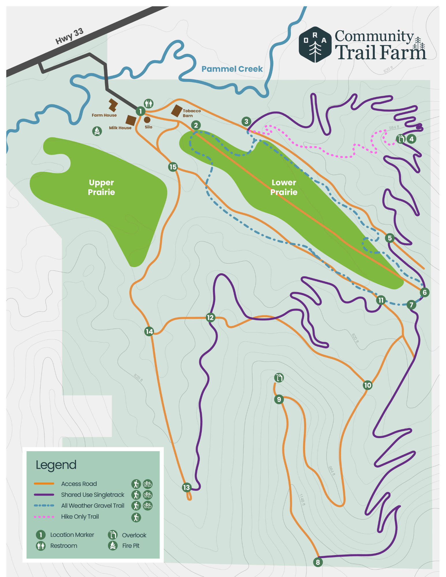 We’re excited to share a major milestone: the Community Trail Farm is now officially open for public pedestrian and bicycle access! There is no public parking available on site. While this opening comes earlier than anticipated, we believe it’s important to welcome the community into the space as soon as possible, inviting public enjoyment while we continue building and restoring the Community Trail Farm.